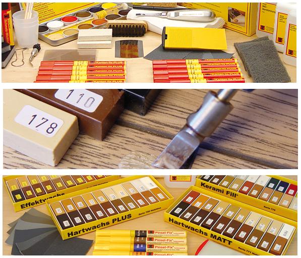Barevný voskový tavný tmel pro trvalou opravu poškozených ploch, jednotlivé odstíny C 13 lze navzájem míchat.