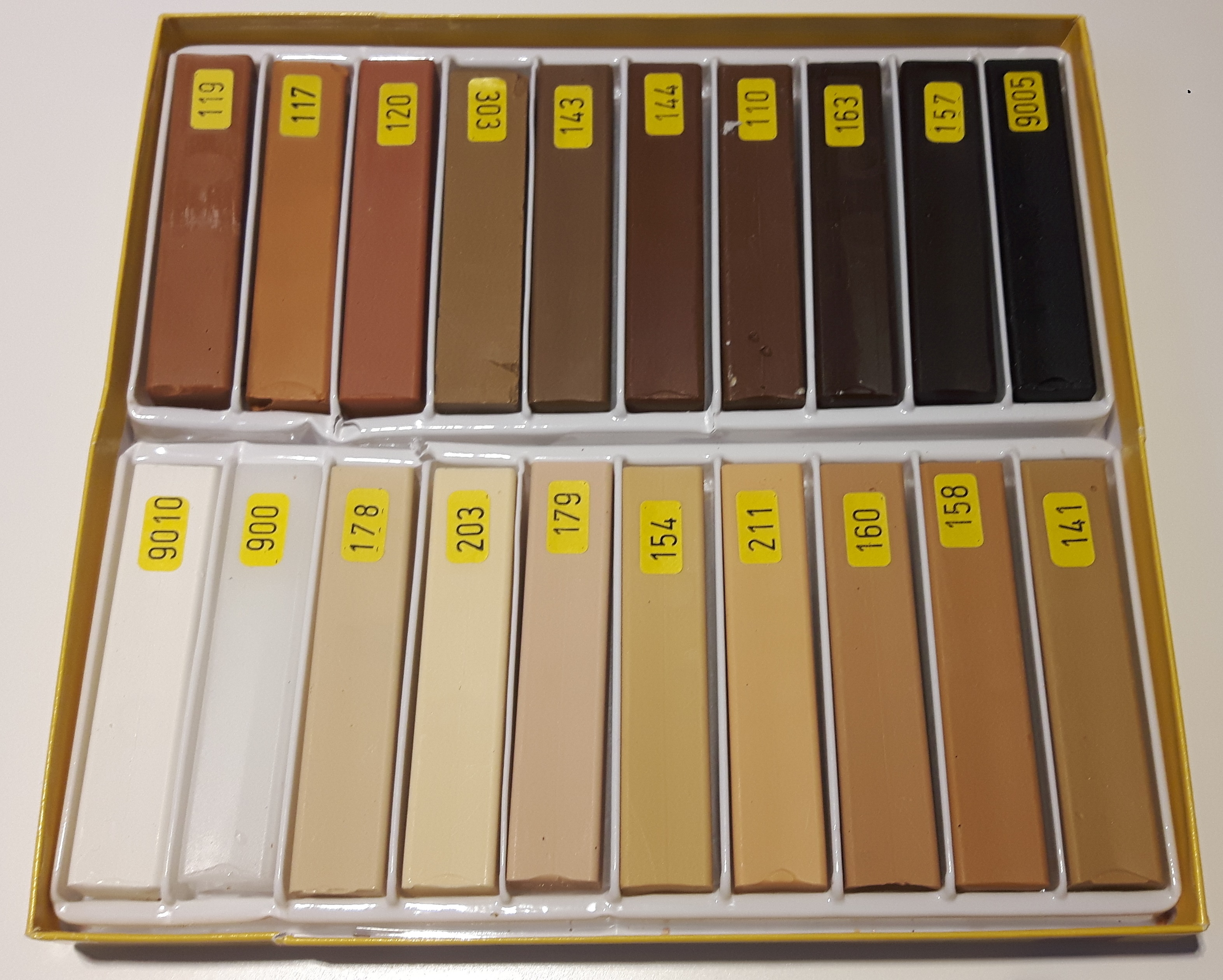 Tvrdý voskový opravný tavný tmel, sada 20ti barev