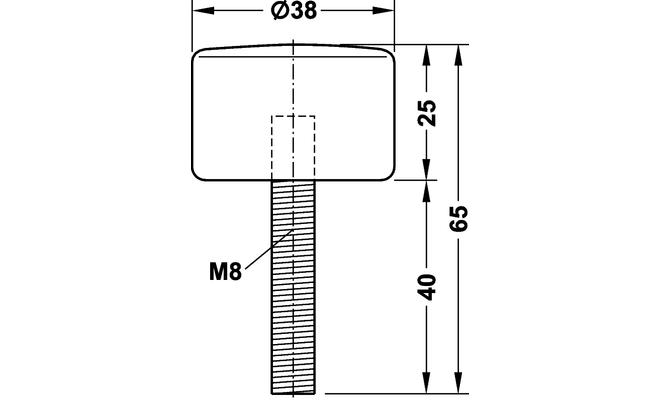 Dveřní zarážka z tvrdé gumy, montáž přišroubováním.
