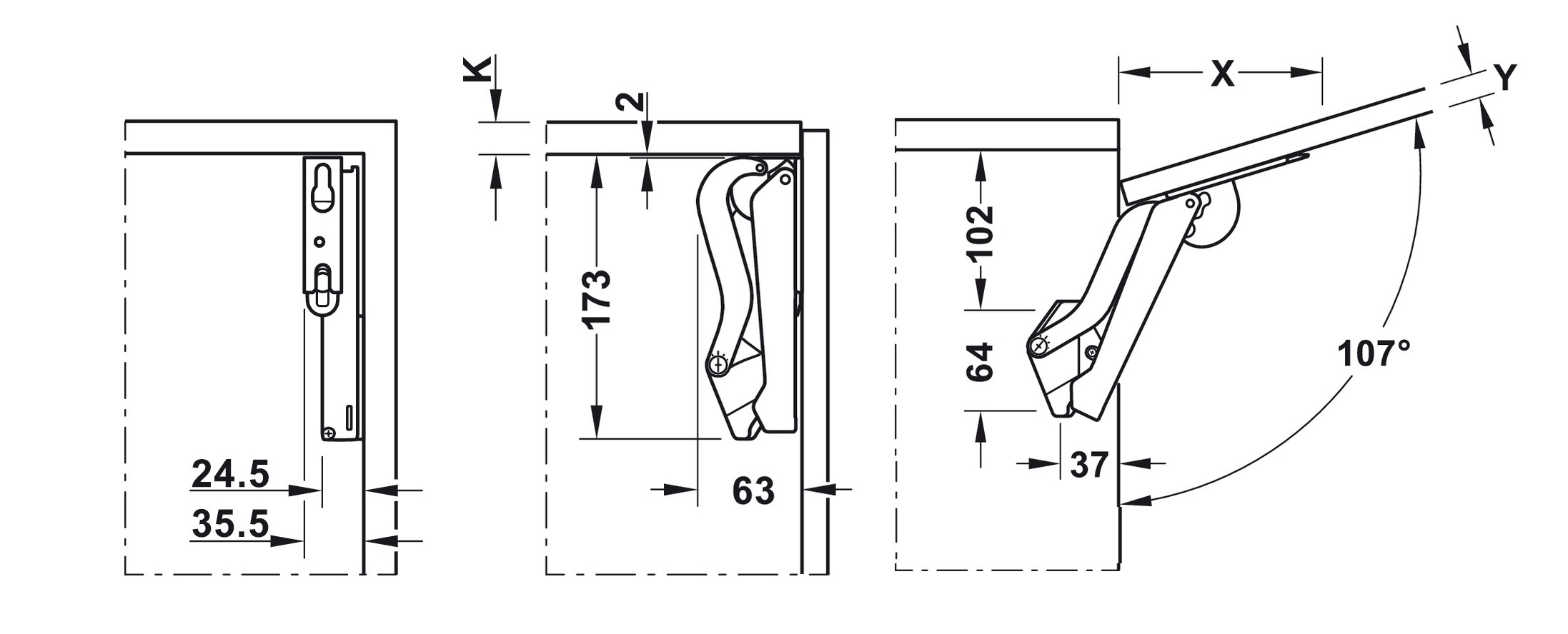 1 Sada výklopného kování (1 ks levý/pravý)