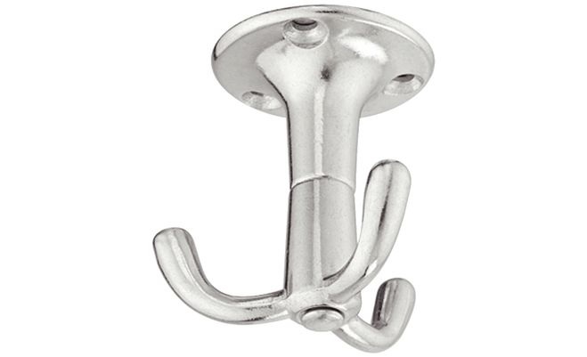 Šatní lesklý hliníkový trojháček, pro přišroubování pod desku.