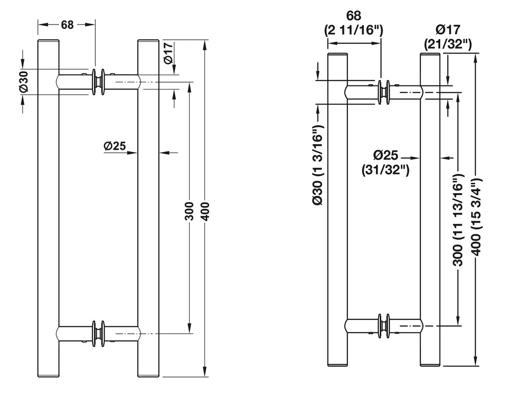 Montáž: přišroubováním přes dva otvory ve skle nebo ve dřevě, průměr otvorů 13 mm, rozteč otvorů 300 mm.