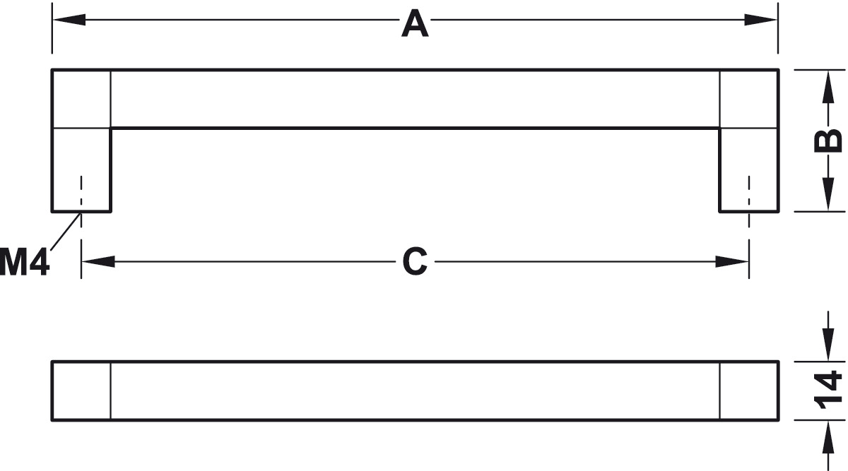 Úchytka nábytková, hranatá v barvách šedý/černý elox