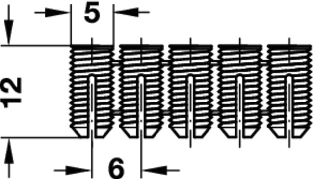 Hmoždinky v pásu s otvorem o průměru 5 mm pro spojovací táhlo Minifix Häfele Materiál: polyamidDélka: 12 mm