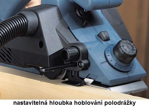Je vybaven otočnými karbidovým noži, oboustrannou přípojkou k odsávání a dvojitou regulací k frézování drážky. Je dodáván v přenosném kufru.