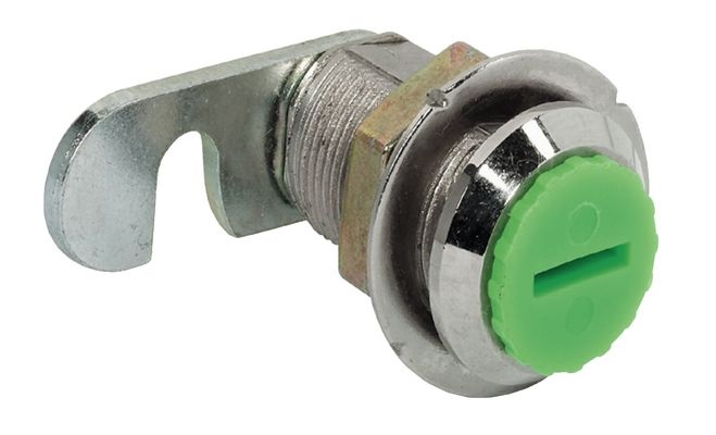 Jazýčkový zámek s montážní maticí a hákovým jazýčkem. Materiál: zinkový odlitek leskle niklovaný Pro tloušťku dveři do 17mm Zamykání: jazýček 90 stupňů , klíč 180 stupňů Montáž: K našroubování se šestihranou maticí