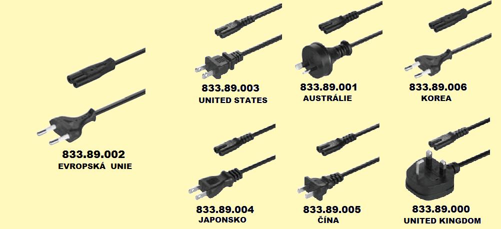 Atypické kabely pro jiné normy než je ČR a EU naleznete ZDE