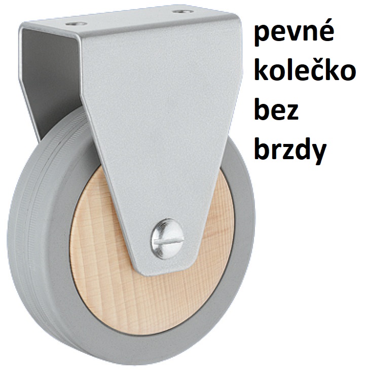 Materiál pouzdra: ocel Materiál kola: buk Barva běhounu: šedá Tvrdost kolečka: měkké Šířka kola: 22 mm Průměr kola: 80 mm nebo 100 mm