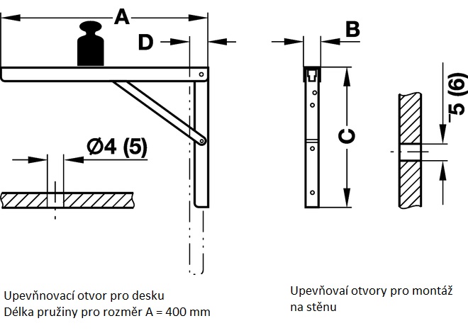 Polohovatelné sklopné konzole, nosnost 60 kg/pár
