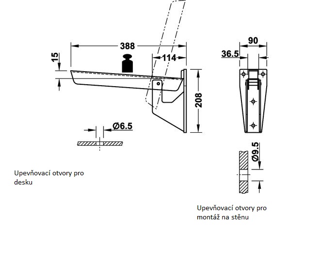 Výklopná konzole Hebgo pro lavice, nosnost 500 kg/pár
