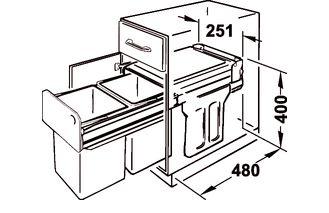 objem 2 x 15 litrů litrů pro šířku korpusu min. 300 mm,ruční plnovýsuv, montáž k přišroubování na dno, koše a víko ze šedého plastu