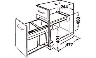 Koš odpadkový dvojitý vestavný na výsuvnou polici
