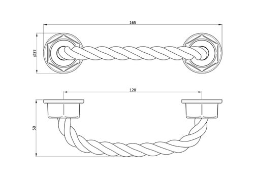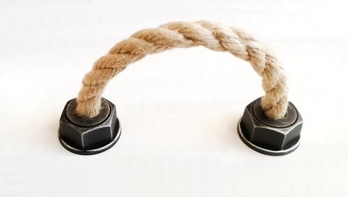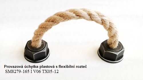 Provazová úchytka plastová s flexibilní rozteč Povrch" plast a sisal, závit kov Délka 165 mm, Rozteč: optimálně 128 mm (36-144) Součást balení: 2 M4 šroubky - lámací