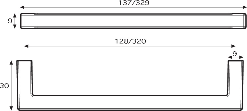 délka: 137 mm šířka: 9 mm výška: 30 mm rozteč: 128 mm