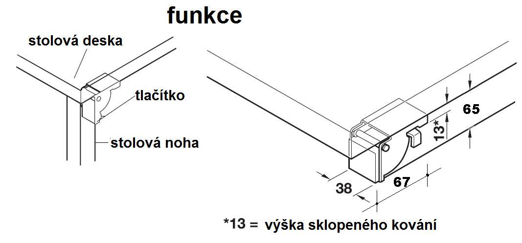 Použití pro sklápěcí nohy o průřezu 38 x 38 mm. Materiál zinkovaná ocel. Kování lze zajistit ve složené i rozložené pozici. Montáž k přišroubování. Uvedená cena je za 1 pár.   |    |  |