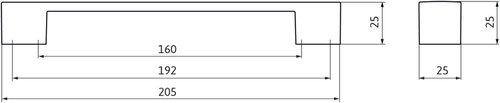 Délka: 205 mm, Rozteč: 192/160 mm, Povrch: železo černé patina