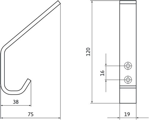 Kovový věšák SIRO Výška: 120 mm, Šířka: 19 mm Součást balení: 2x vrut v barvě povrchu