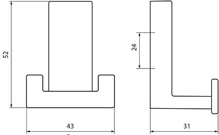 hloubka : 31 mm šířka: 43 mm výška: 52 mm rozteč: 24 mm