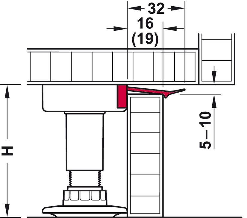 Používá se pro připevnění soklového panelu. Používá se hlavně pro nožky vysoké 60mm, ale lze je bez problémů použít pro všechny ostatní výšky nožek Axilo.