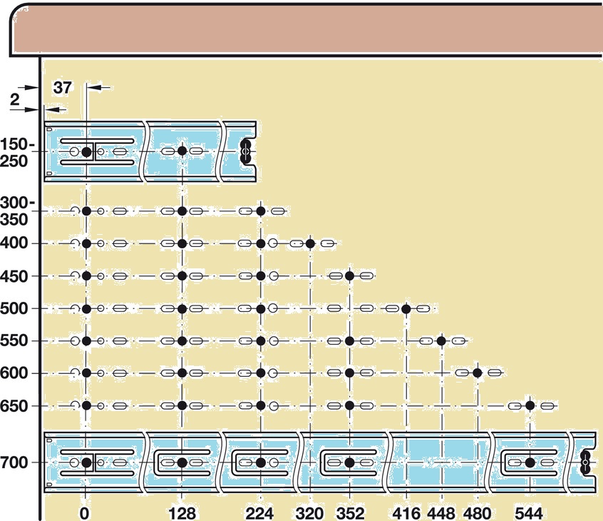 Accuride 3832 - plnovýsuv, nosnost 45kg,
