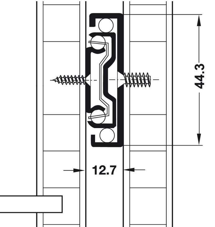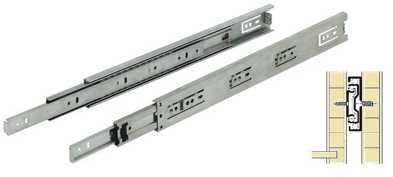 Kuličkový nábytkový plnovýsuv, nosnost do 30 kg v závislosti na délce, montáž na bok
