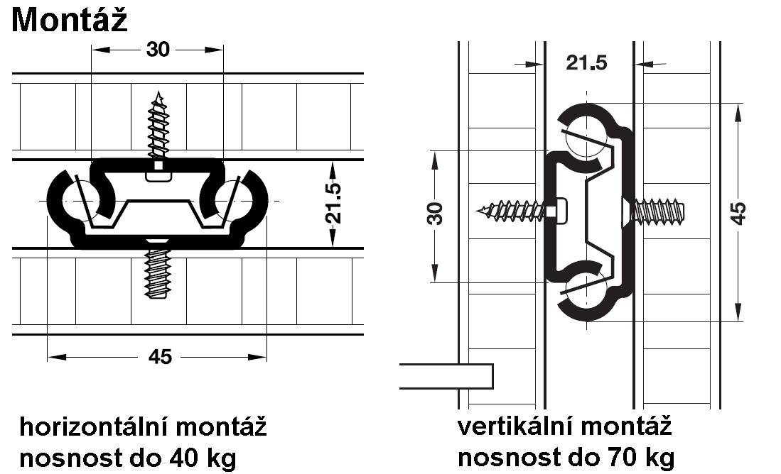 Policový a šuplíkový výsuv, nosnost 70 kg, délka 350 mm