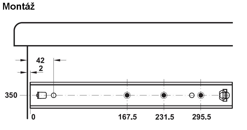 Délka výsuvu 350mm, délka vysunutí 224mm.