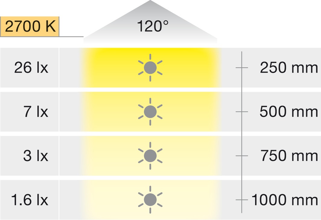Orientační svítidlo pro obývací pokoje a objekty s integrovaným pohybovým spínačem a snímačem okolního světla. Je-li intenzita okolního světla pod 15 luxů, světlo se samo rozsvítí při indikaci pohybu.