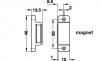 Nábytkový magnet s přídržnou silou 3 - 4 kg. Materiál: pouzdro plastové, protikus ocel s plastovým obalem Barva: pouzdro bílé nebo hnědé Provedení: pouzdro pohyblivé, protikus pevný Možnost nastavení: v podélném otvoru v pouzdře Montáž: pouzdro i protikus k přišroubování