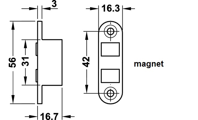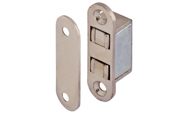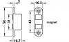 Nábytkový magnet pro zapuštěnou montáž, niklovaný, přídržná síla 4 kg. Materiál: zinkový odlitek, protikus ocelový Montáž zapuštěním a přišroubováním.