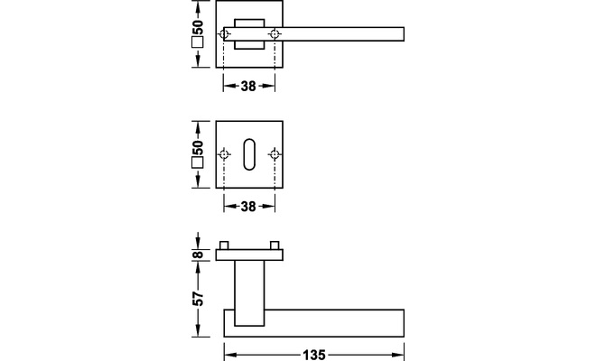 V rozetě je integrována mechanika která udržuje kliku v horní vodorovné poloze.