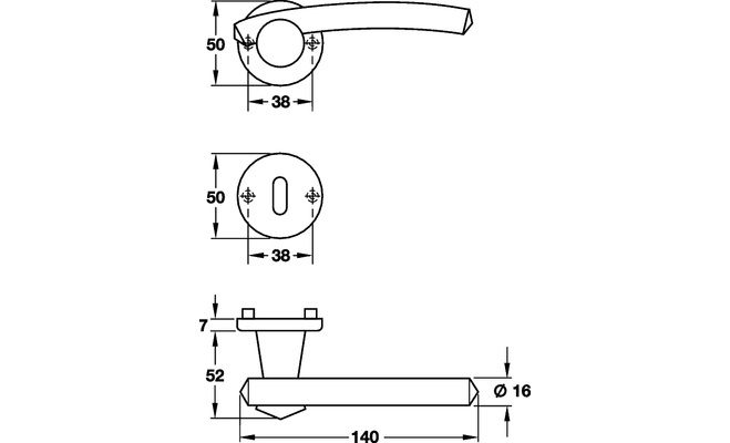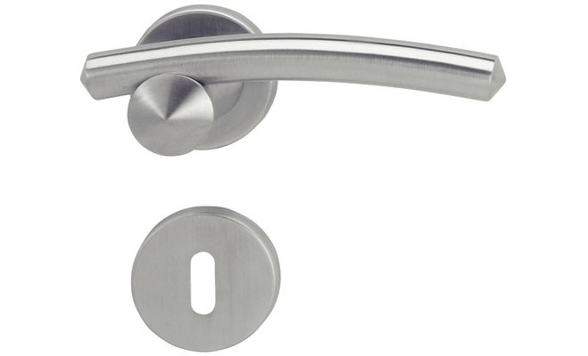 Nerezová matná klika na interiérové dveře. Použitelné pro dveře tl.38-42mm. V rozetě je integrována mechanika která udržuje kliku v horní vodorovné poloze.   Sada kování obsahuje:2x klika (nebo 1x klika + 1x koule) 1x kolík 8x8mm 2x rozeta pro kliku 2x rozeta pro klíč nebo WC rozeta 4x vruty 4x50mm |    |  |