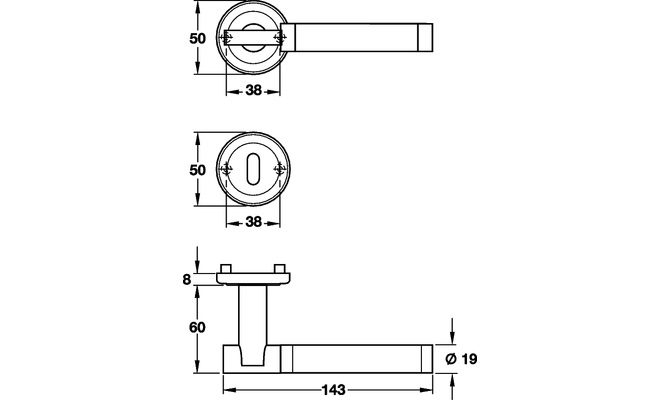 V rozetě je integrována mechanika která udržuje kliku v horní vodorovné poloze.