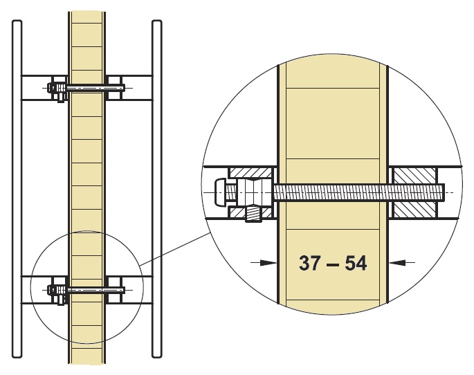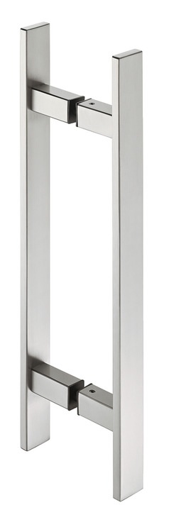 Nerezové hranaté matné madlo na dveře. Instalace oboustranná. V kompletu s madlem je montážní sada pro instalaci na dveře o síle 37mm až 54mm. (první a druhý řádek ve variantách zboží) Pro jiné tloušťky dveří lze přiobjednat jiné montážní sady (viz obrázek a třetí až šestá položka ve variantách zboží). Vrtání děr do dveří pro madla má průměr 10mm.