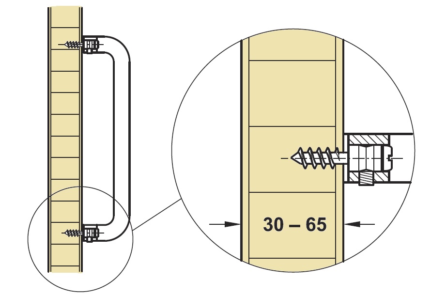 1x madlo se závitem 1x sada montážního materiálu pro tloušťku dveří 30 - 65 mm