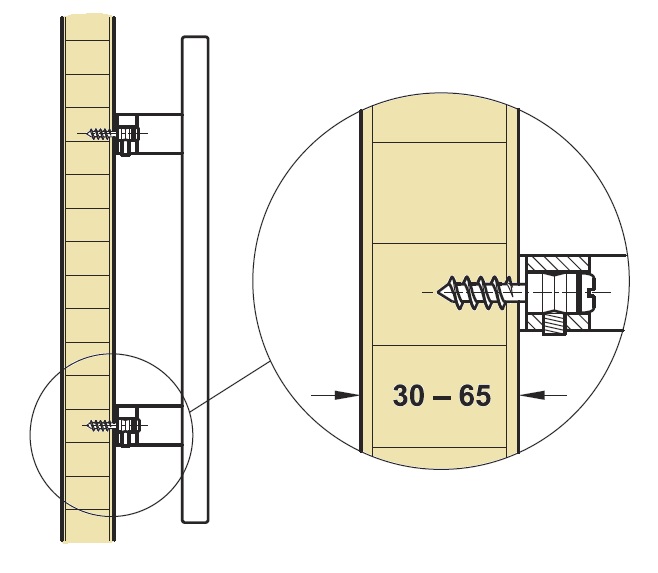 1x madlo se závitem 1x sada montážního materiálu pro tloušťku dveří 30 - 65 mm