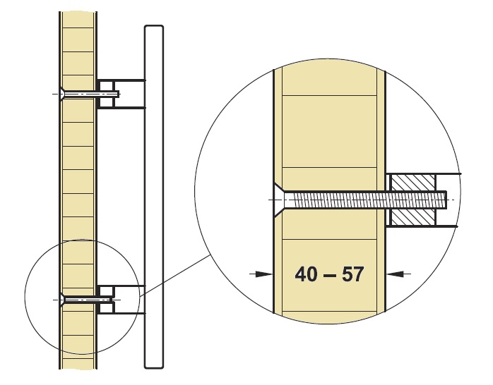 1x madlo se závitem 1x sada montážního materiálu pro tloušťku dveří 40 - 57 mm