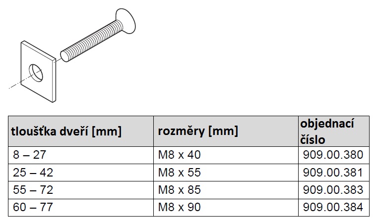 | 909.00.383 | - montážní sada, síla dveří 55 - 72mm | 1komplet | 4 dny | 115,20 Kč |