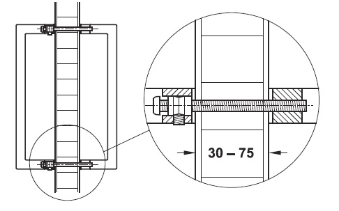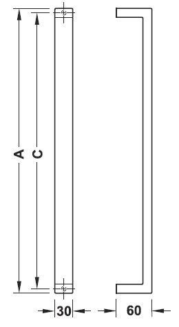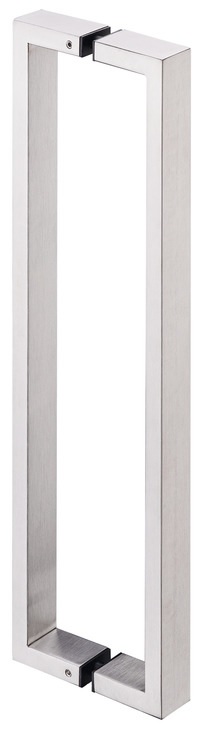 Nerezové hranaté matné madlo na dveře, oboustranné. Instalace oboustranná. Instalace na dveře o síle 30mm až 75mm. Pro tloušťku dveří 8 - 25mm lze přiobjednat jinou montážní sadu (viz obrázek). Vrtání dveří 8mm.