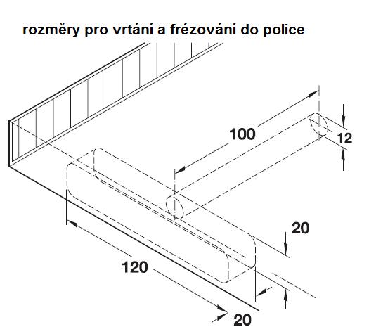 montáž k přišroubování na stěnu, police se potom nasune na přišroubovaný nosič