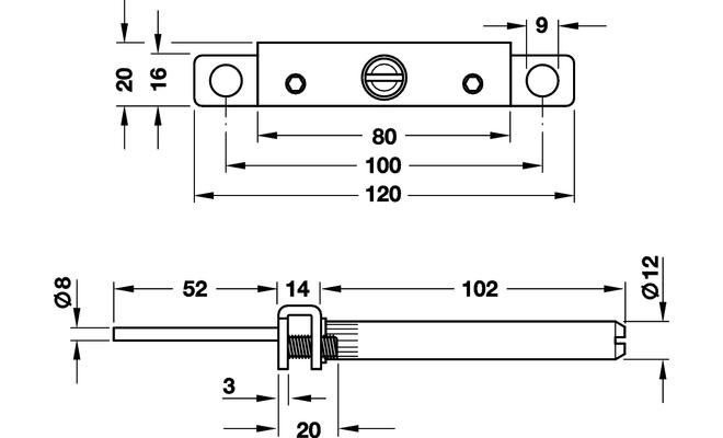 pro neviditelnou montáž, s patkou k přišroubování a čepem
