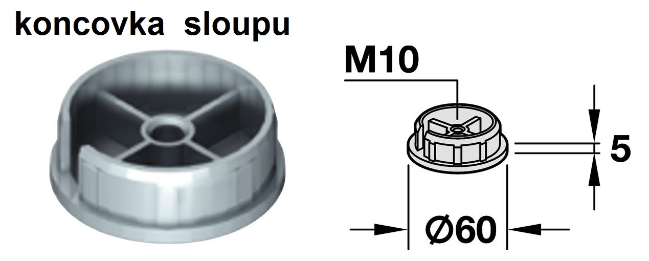 Koncovka pro sloup: Materiál: zinkový odlitek Povrch. úprava: bez úpravy Průměr: 60mm závitM10
