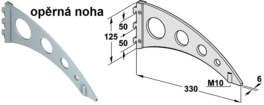 Opěrná noha pro postranní montáž: Hloubka 330mm provedení: se závitem M10 pro umístění seřizovacího šroubu nebo koleček Montáž: k přišroubování