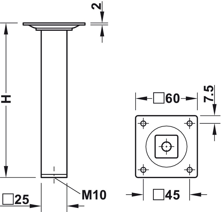 Pro nastavení výšky lze dokoupit šroub se závitem M10 ZDE