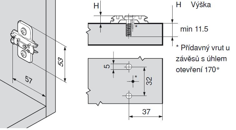 - Materiál: niklovaná ocel - Montáž předmontovanými eurošrouby Ø 6 mm - S výškovým nastavením ± 3 mm