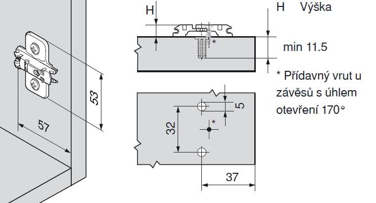 - Výška H 8,5 a 11,5 mm u zvýšené varianty