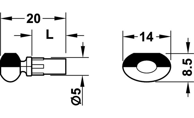 Podpěra polic pro dřevěné nebo skleněné police k naražení do otvoru pr. 5 mm Häfele S ochranou proti protočení čepu Materiál: zinkový odlitek Čep: nikl Černá plastová podpěra Délka: 10 mm Balení: 100 nebo 3000 ks