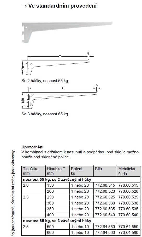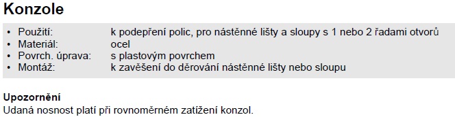Policové konzole ve standardním provedení, nosnost 55kg a 65kg