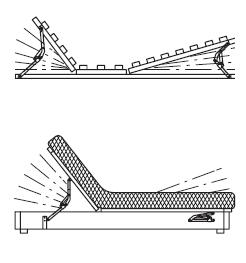 Možnost nastavení hlavy nebo nohou na lamelovém roštu nebo lehátku nebo také na jiné možnosti použití. Před vrácením do nulové polohy zvedněte díl do koncové vrchní polohy.