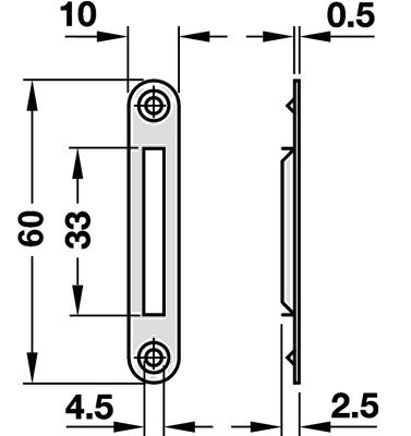Nábytkový protiplech pro zapuštění a přišroubování. Materiál ocel pozinkovaná nebo pomosazená. |    |  |